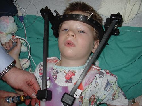 I had hung a sign on him saying "This is halo traction to straighten my spine..ask, and I'll tell you all about it." To make things even more